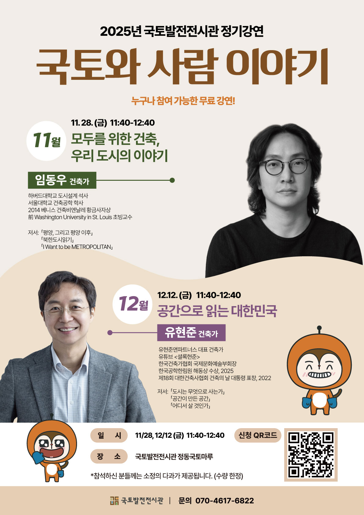 2025년 국토발전전시관 정기강연 개최안내(11/28, 12/12)작성자 : 김연경작성일 : 2025.11.19조회수 : 114