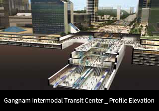 The Gangnam Intermodal Transit Center is aiming to provide a people-centered public transportation service for the future by securing parking lots to meet future demands, and also introducing links to various commercial, public, and cultural facilities in the adjacent city areas.